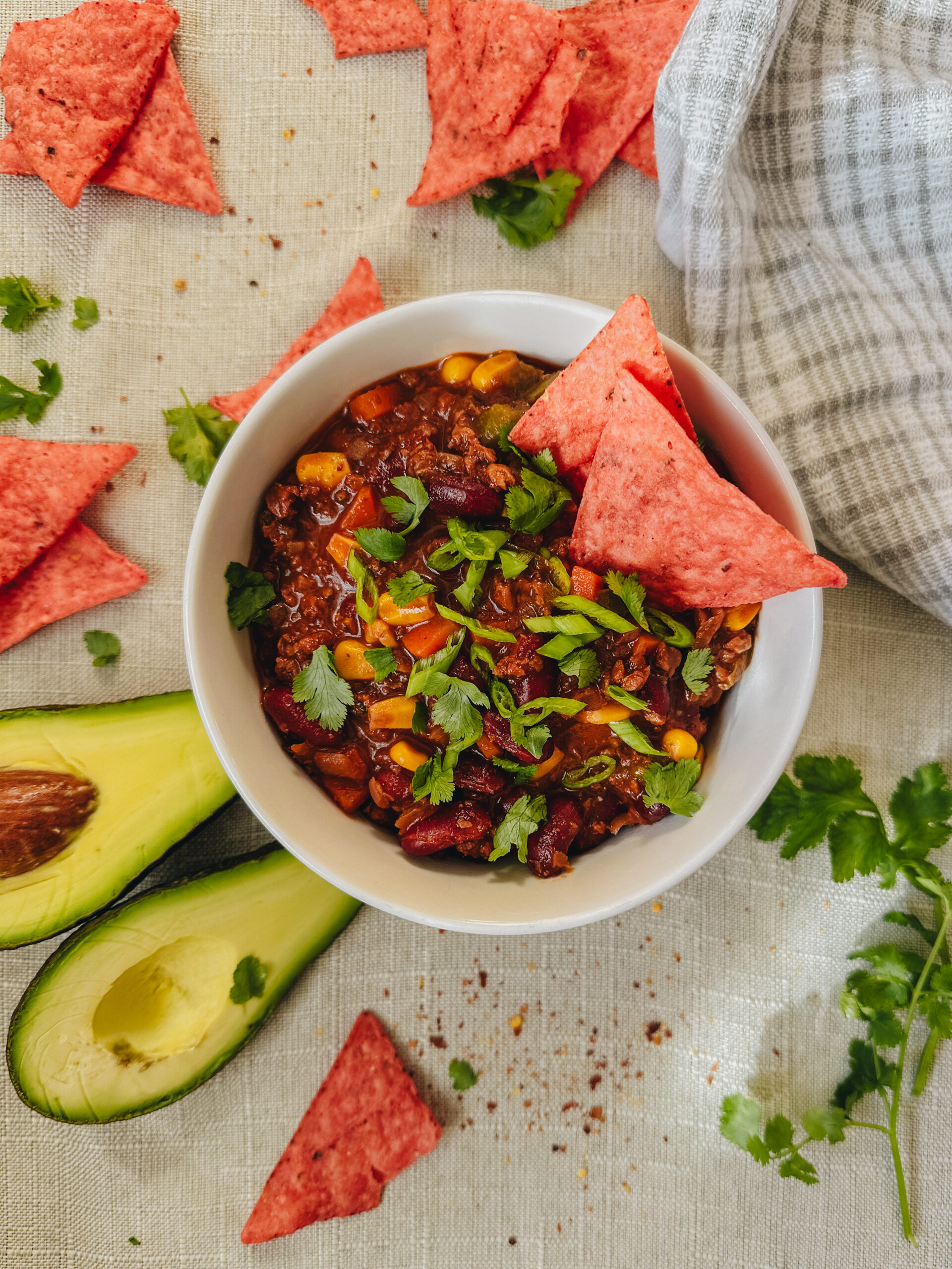 J'ai longtemps pensé que je n'aimais pas le chili, jusqu'à ce que je crée ma propre recette. J'ai souvent trouvé ça trop acide et mon petit estomac fragile ne l'appréciait pas. J'ai créé une version tout aussi goûteuse d'un chili traditionnel, mais sans le goût acide. Sa douceur va vous charmer à tout coup j'en suis convaincue !