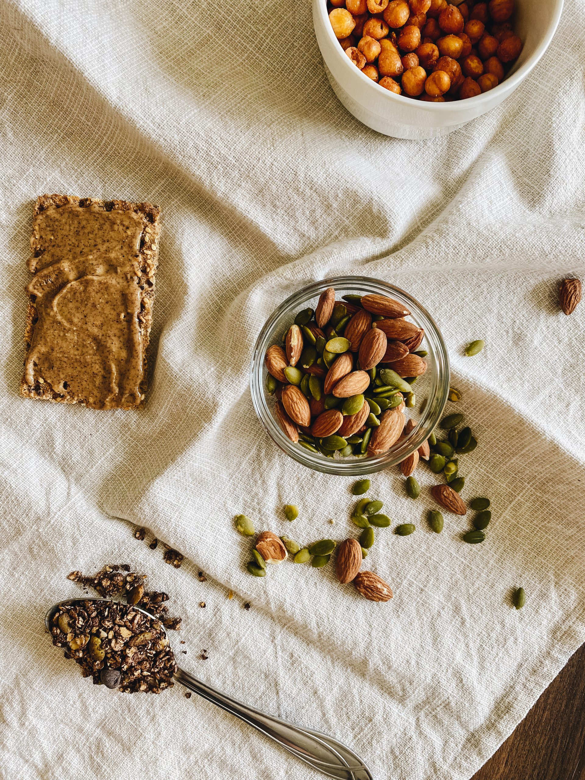 Ça c’est vraiment mon option la plus rapido-presto quand j’ai un petit creux ! Une bonne pognée de noix et/ou graines au choix (amandes, noix de Grenoble, pacanes, noix de cajou, graines de tournesol, graines de citrouille, etc.).
