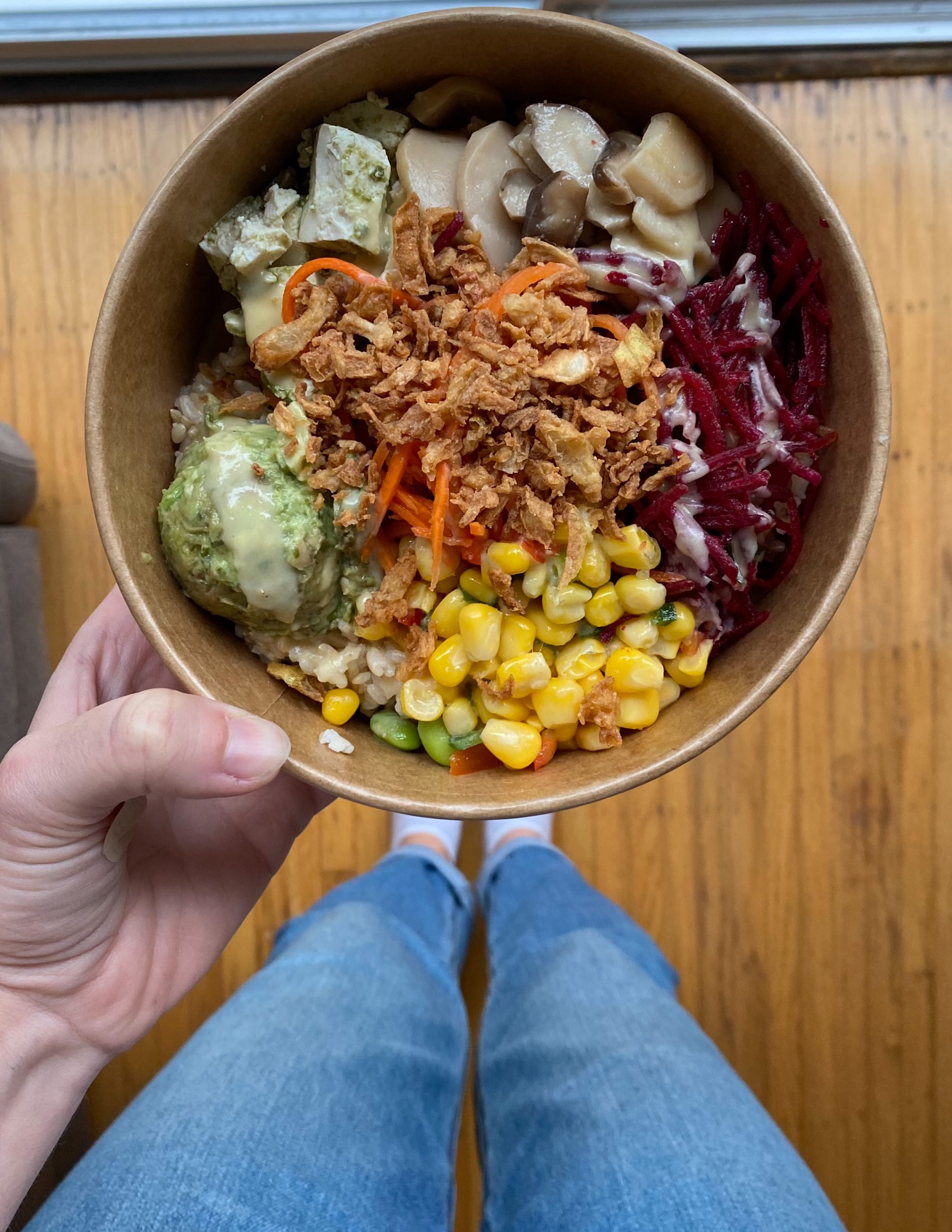 Pour dîner, on a savouré un bol de poké du restaurant Pacific Poke qui offre plusieurs choix véganes.