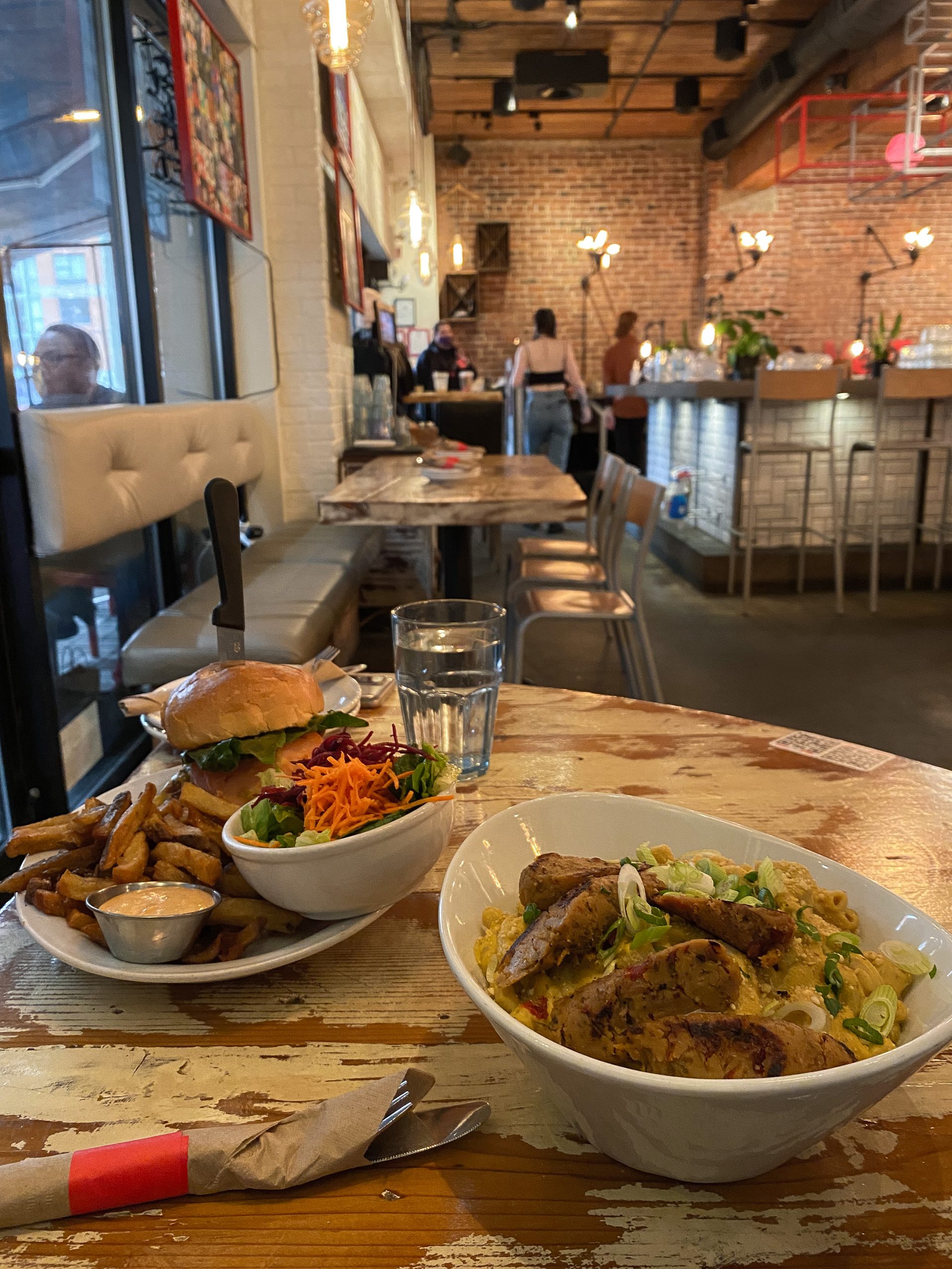 En soirée, on est allées prendre l’apéro à la microbrasserie Granville Island Brewing (quelques options véganes), puis on a soupé au restaurant Heirloom (végétarien avec plusieurs options véganes). J’ai pris les tacos aux artichauts et j’ai adoré.