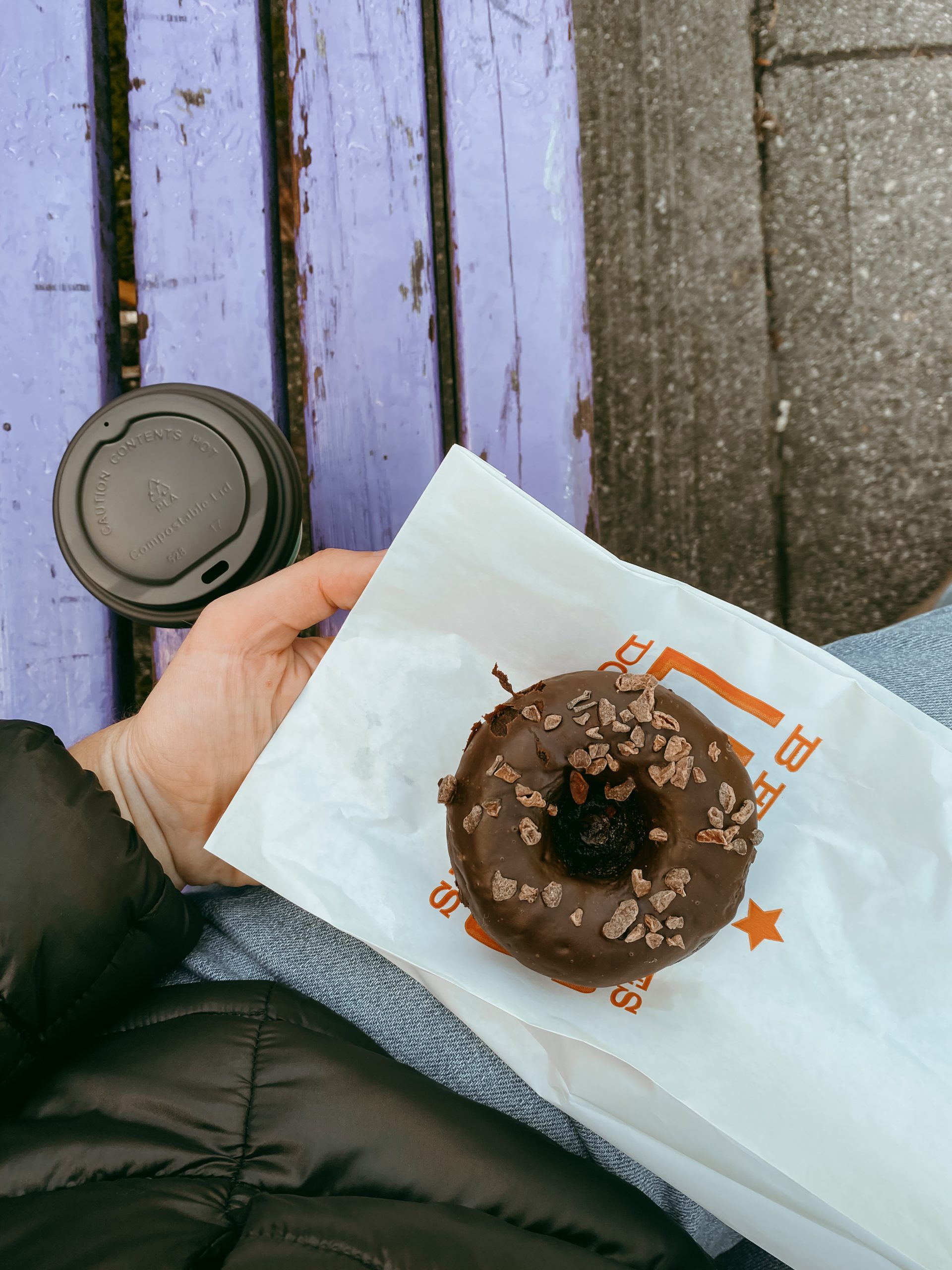 Dernière journée pour profiter d’une petite marche sur le bord de la plage de Kitsilano. J’en ai aussi profité pour aller me chercher un café latté et un beigne végane au 49th Parallel Coffee.
