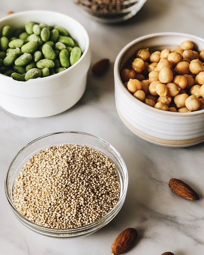 Les sources de protéines animales sont bien connues et on pense souvent à tort que ce sont les seules. Le règne végétal a toutefois une panoplie de sources intéressantes à proposer ! Les produits de soya, tels que le tofu, le tempeh, les edamames et la boisson de soya enrichie sont des sources de protéines fort intéressantes.
