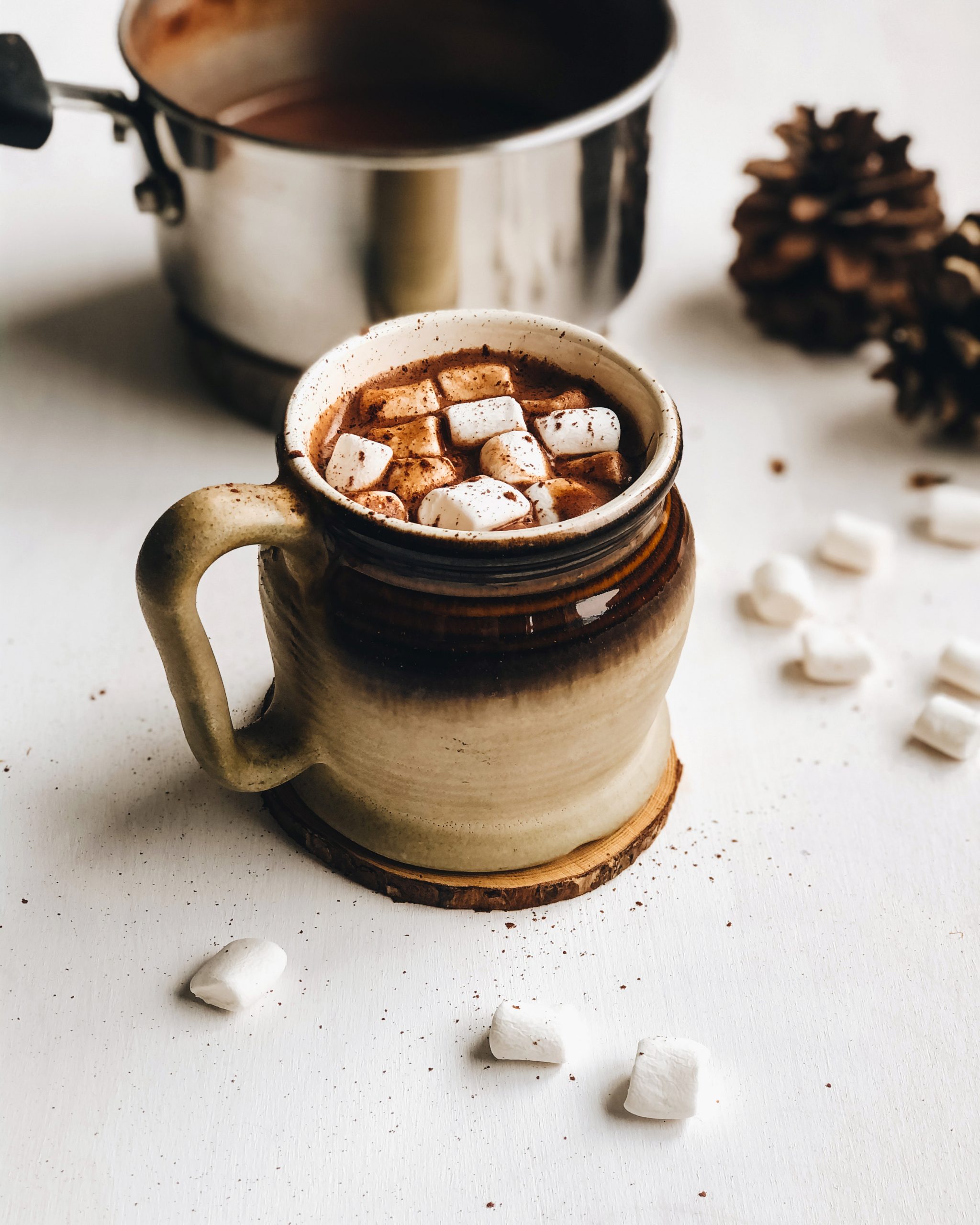 C’est certain qu’un chocolat chaud peut être très minimaliste. Un peu de cacao, du lait et du sucre et le tour est joué ! Par contre, je trouve ça le fun de m’amuser à ajouter quelques différences comme ajouter des épices variées (c’est étonnant à quel point le goût est bon selon les épices choisies), utiliser une sorte de sucre différente que le sucre blanc, prendre une boisson végétale (avoine, soya, coco, amande, etc.) et ajouter un petit arôme spécial comme de la vanille ou de la menthe !