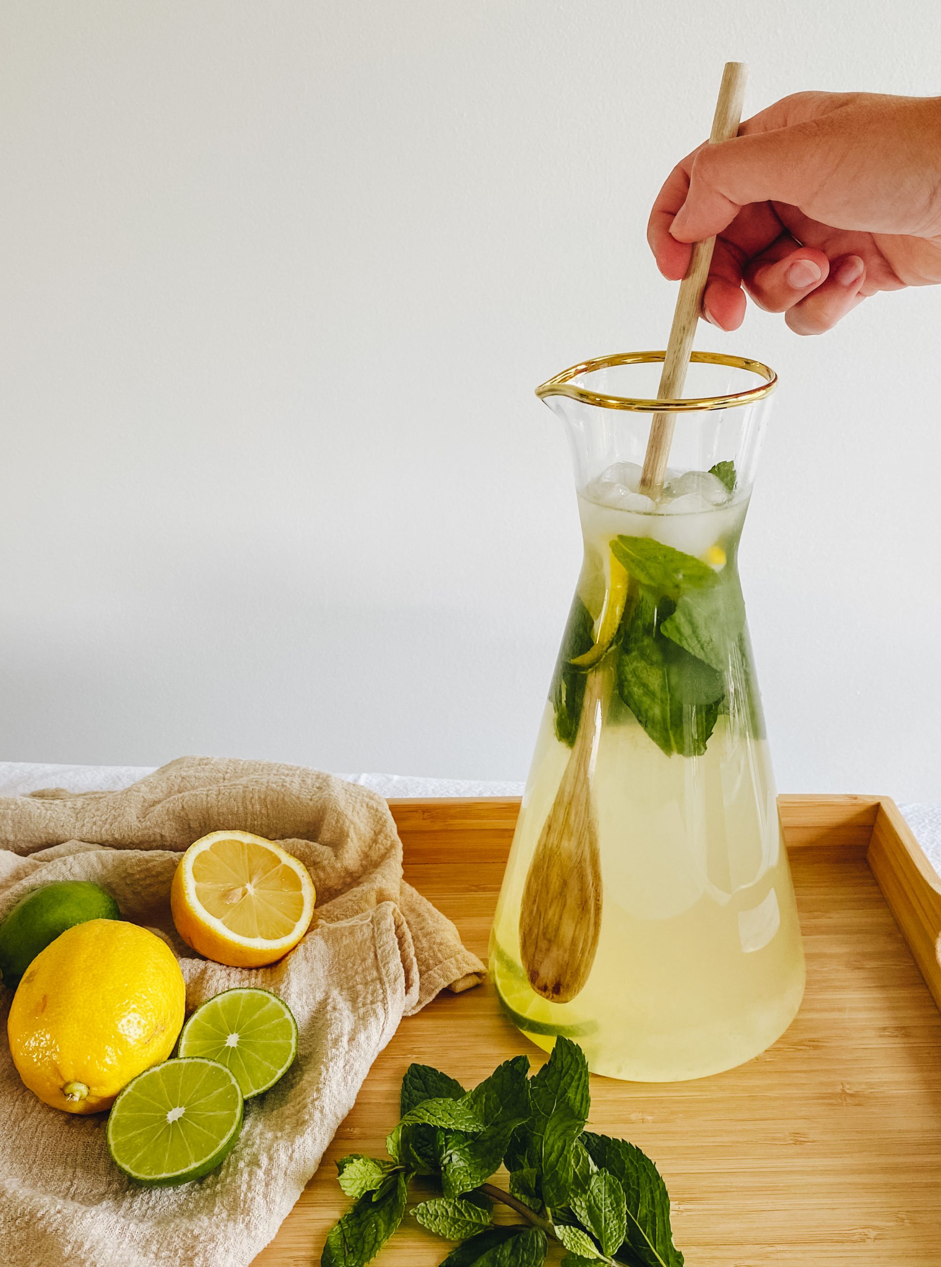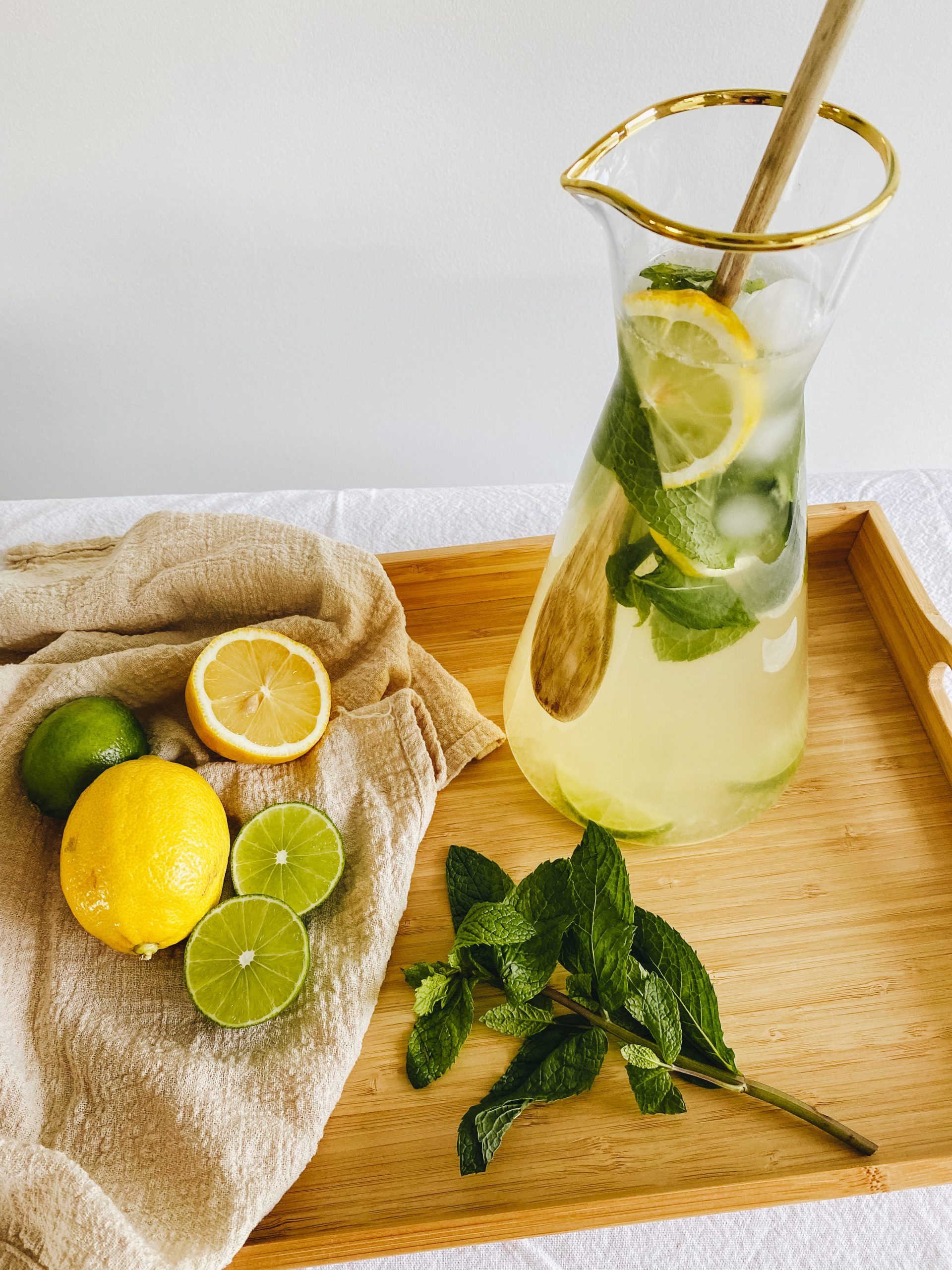 Un été n’est pas vraiment un été sans limonade ! Pour moi, une limonade se doit d’être rafraîchissante et désaltérante. C’est pour cette recette que j’adore ajouter des feuilles de menthe fraîche (comme pour cette recette). Ça permet de rendre la limonade encore plus douce et délicieuse. Ça prend quelque temps avant que les arômes de la menthe ne s’échappent dans l’eau. Il est donc important d’attendre un peu avant de la boire !