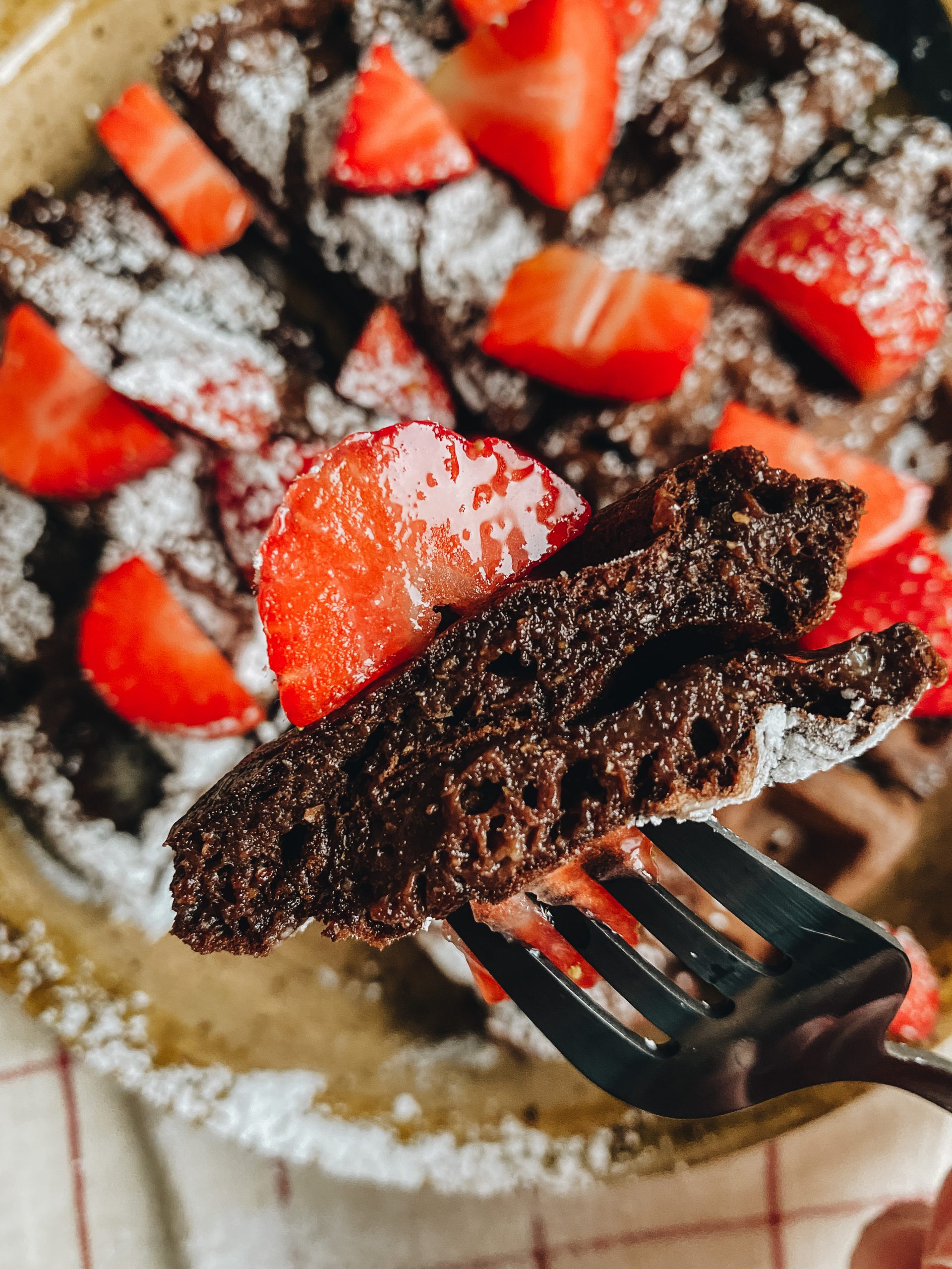 Personnellement, pour des gaufres au chocolat, je recommande un simple coulis de sirop d’érable, quelques petits fruits (fraises, framboises et/ou bleuets) et, si tu te sens extra, tu peux garnir le tout d’un peu de sucre à glacer ! Je serais très curieuse de connaître tes garnitures de gaufres préférées. Laisse-nous savoir dans les commentaires et je suis convaincue que ça donnera de bonnes idées à tous et à toutes !