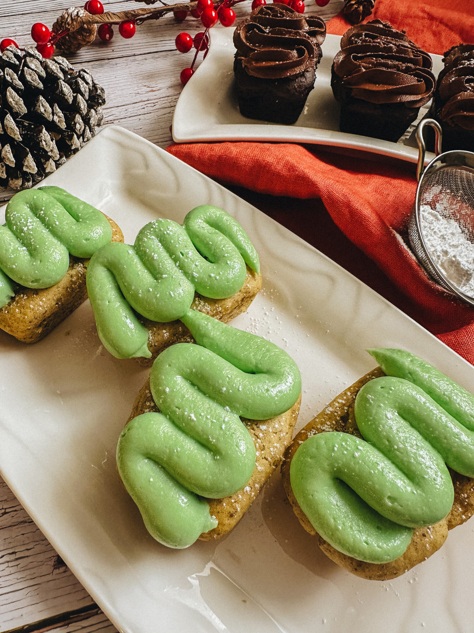 Ici, j’ai décidé de faire le glaçage vert pour la version à la vanille, mais je recommande fortement de vous amusez à les décorer comme vous le voulez ! Ça peut vraiment être une activité plaisante à faire en famille pendant les vacances des Fêtes.
