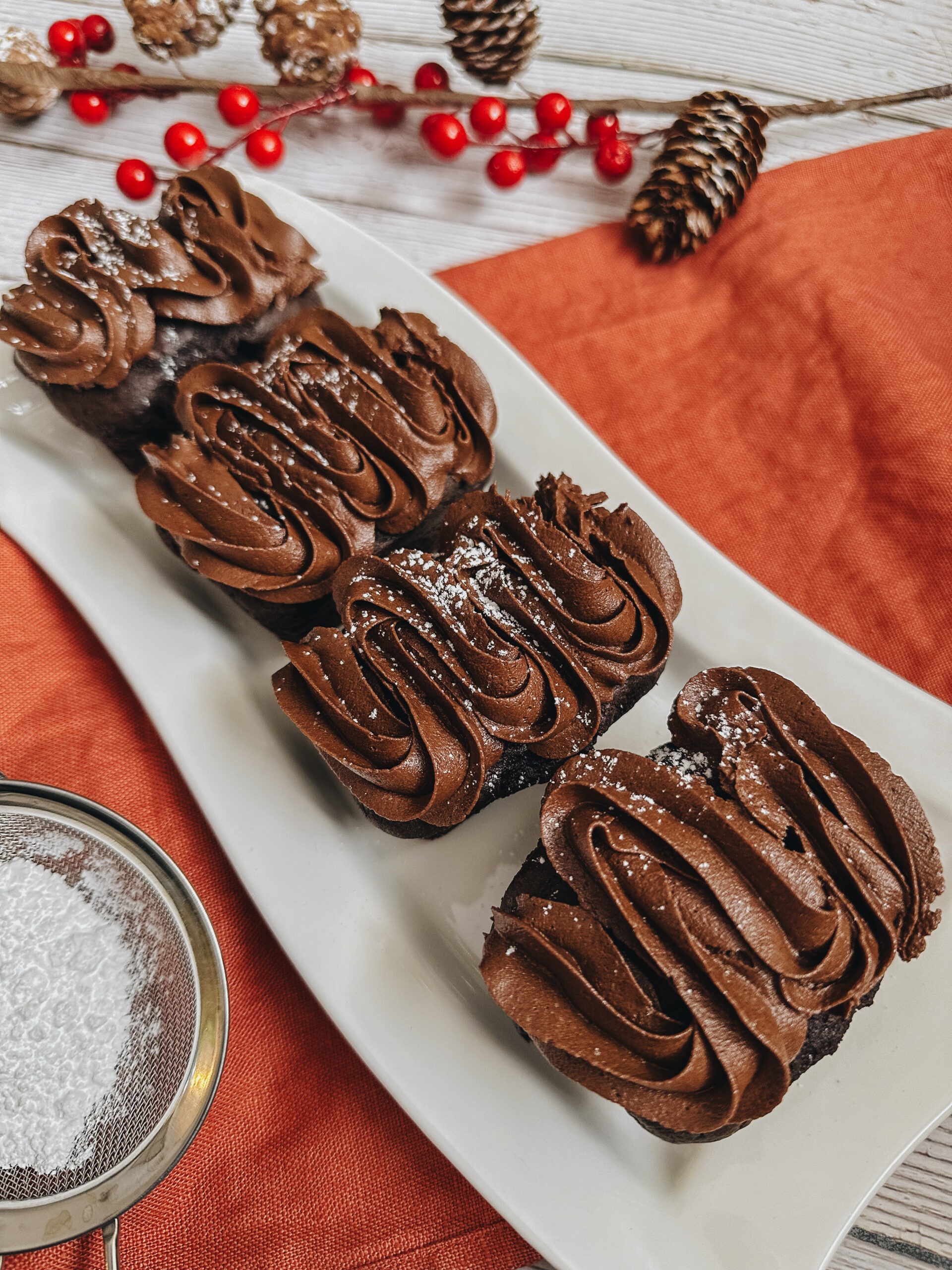 J’ai vraiment hésité à appeler cette recette « mini bûches » plutôt que « mini gâteau » parce que je me suis dit que certaines personnes seraient mécontentes de cette appellation. C’est vrai que, en théorie, ce n’est pas les classiques bûches roulées que l’on connaît. Par contre, à ma défense, ça ressemble quand même un peu ? Et j’avais surtout envie de vous offrir une recette de bûche accessible. Je trouve ça ultra difficile de réussir une bûche de Noël… Ces petits gâteaux sont tout comme, et surtout, ils sont absolument décadents. Ces petites versions individuelles sont parfaites pour être partagées sur une grande tablée pleine de desserts !