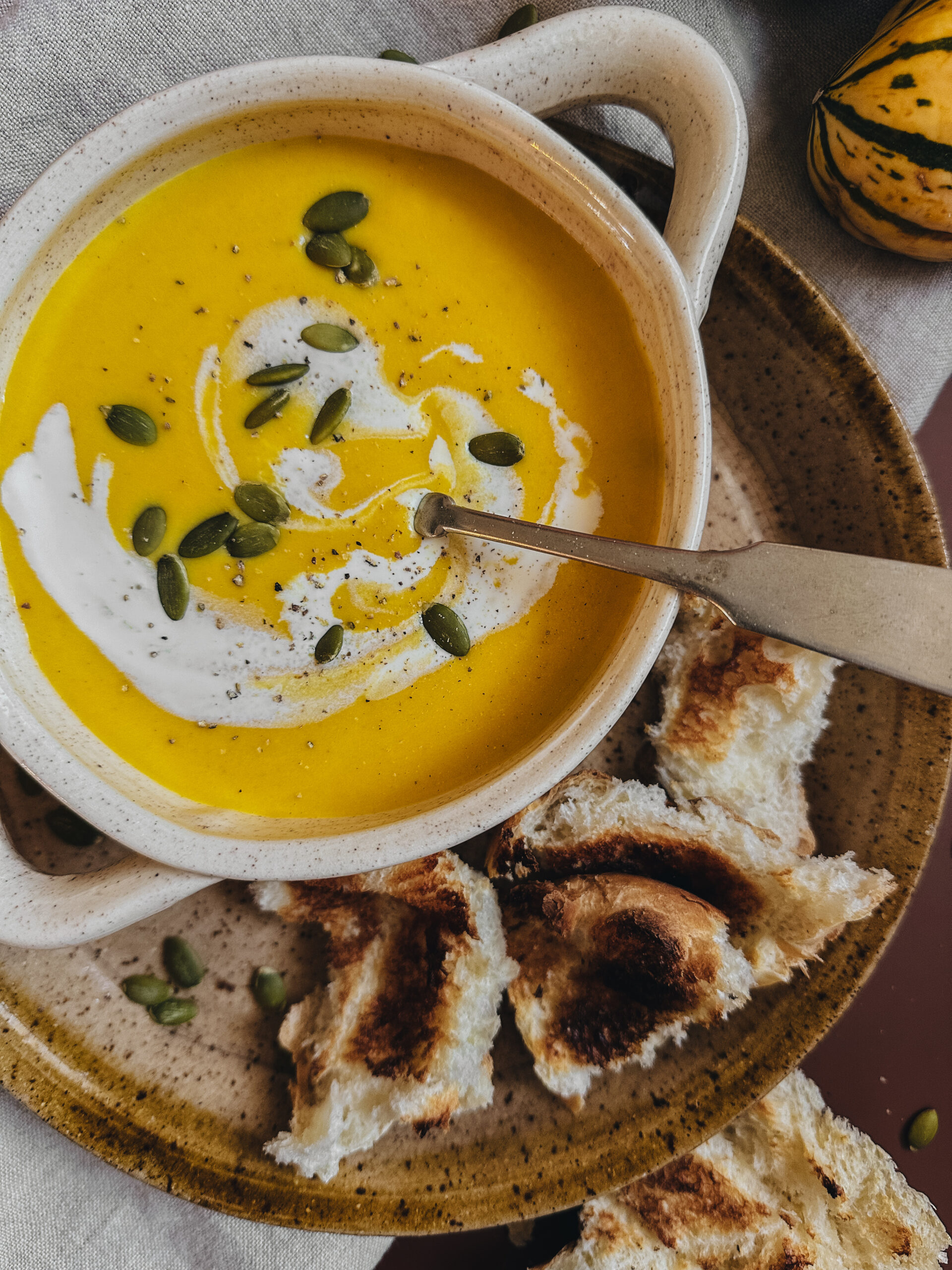 C’est incroyable à quel point c’est facile et rapide de faire un potage. Cette recette était prête en trente minutes top chrono. C’est vraiment super ! Si jamais vous avez des citrouilles à la maison que vous utilisez comme décoration, n’hésitez surtout pas à les utiliser en remplacement de la courge Butternut. Ça évitera le gaspillage quand l’Halloween sera finie !